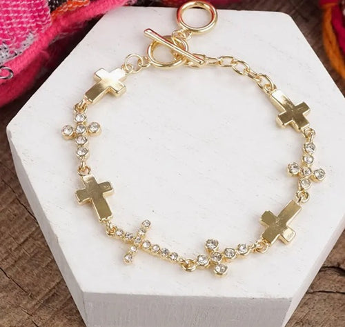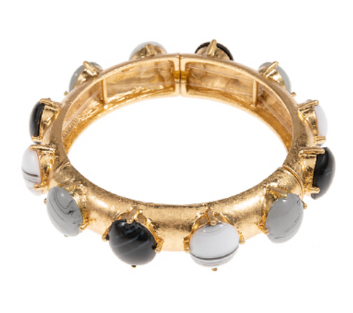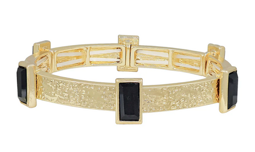 / Textured Gold with Black Rectangle Crystals Stretch Bracelet