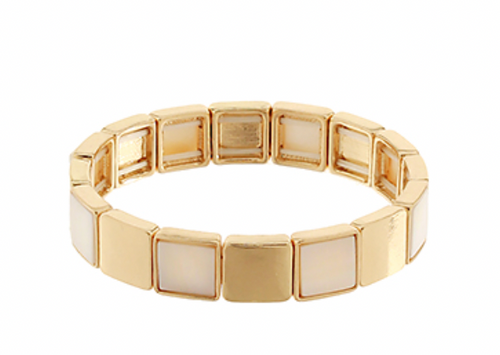 Pearl & Metal Square Linked Bracelet