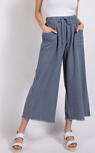 / Frayed Wide Leg Pants with Pockets