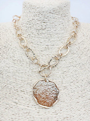 Open Gold Chain with Hammered Coin Charm 16"-18" Necklace