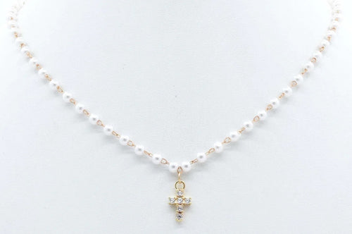 PEARL CHAIN CROSS PENDANT NECKLACE
