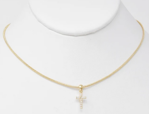 / Gold Snake Chain with Rhinestone Cross 16"-18" Necklace