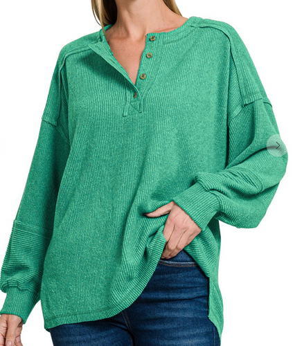 /RIBBED BRUSHED HACCI MELANGE HENLEY SWEATER