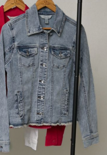 /Frayed Denim Jacket w/ Novelty Buttons - Curvy