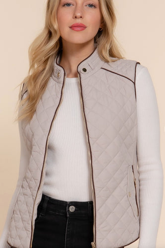 SUEDE PIPING DETAIL RIB QUILTED PADDING VEST-beige