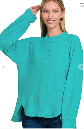 /BRUSHED MELANGE HACCI OVERSIZED HENLEY SWEATER