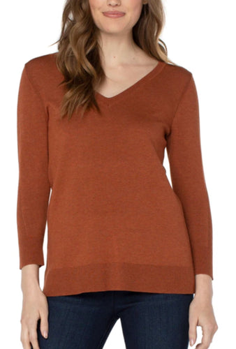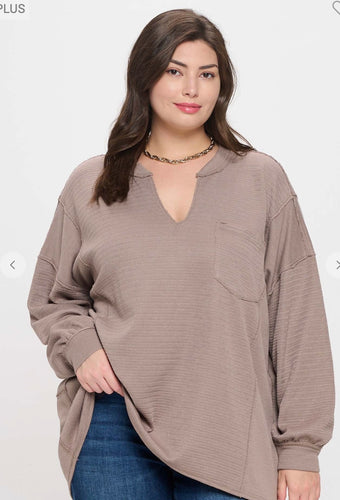 /PLUS SOLID PATCHWORK SPLIT NECK KNIT TOP