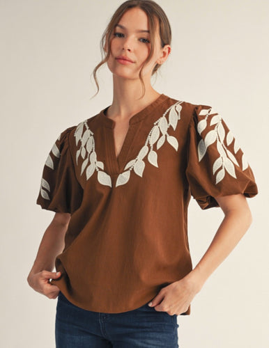 / Embroidered Leaf Top