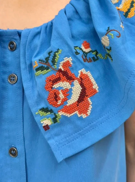 The standout detail is the beautifully ruffled neckline adorned with colorful floral embroidery, adding a playful and romantic touch that instantly elevates the look. The breezy fit keeps it comfortable and flattering, making it perfect for brunch, vacation, church, or weekend outings.