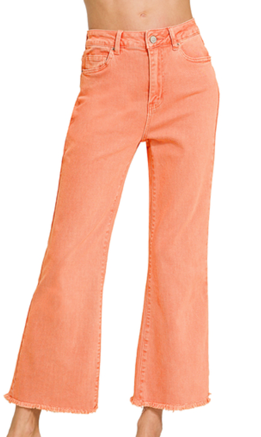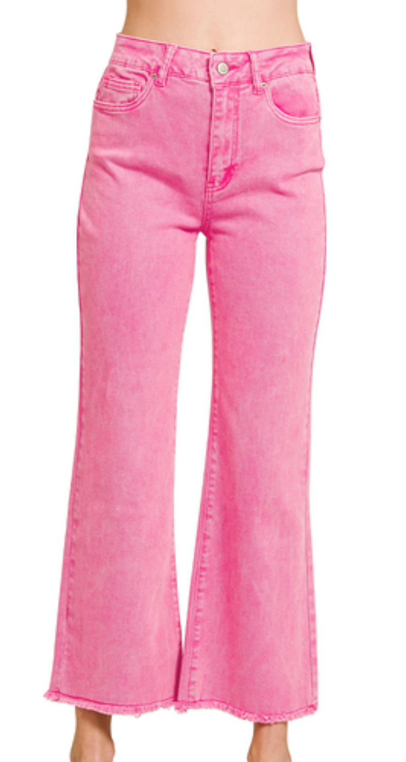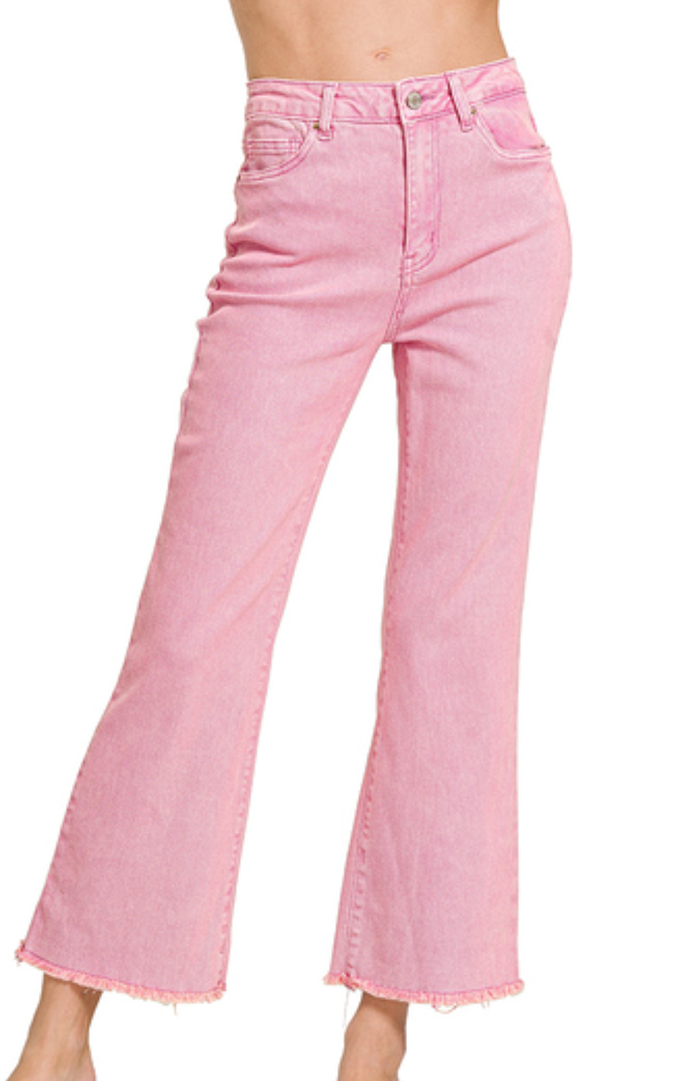 ACID WASHED HIGH WAIST FRAYED HEM BOOTCUT PANTS