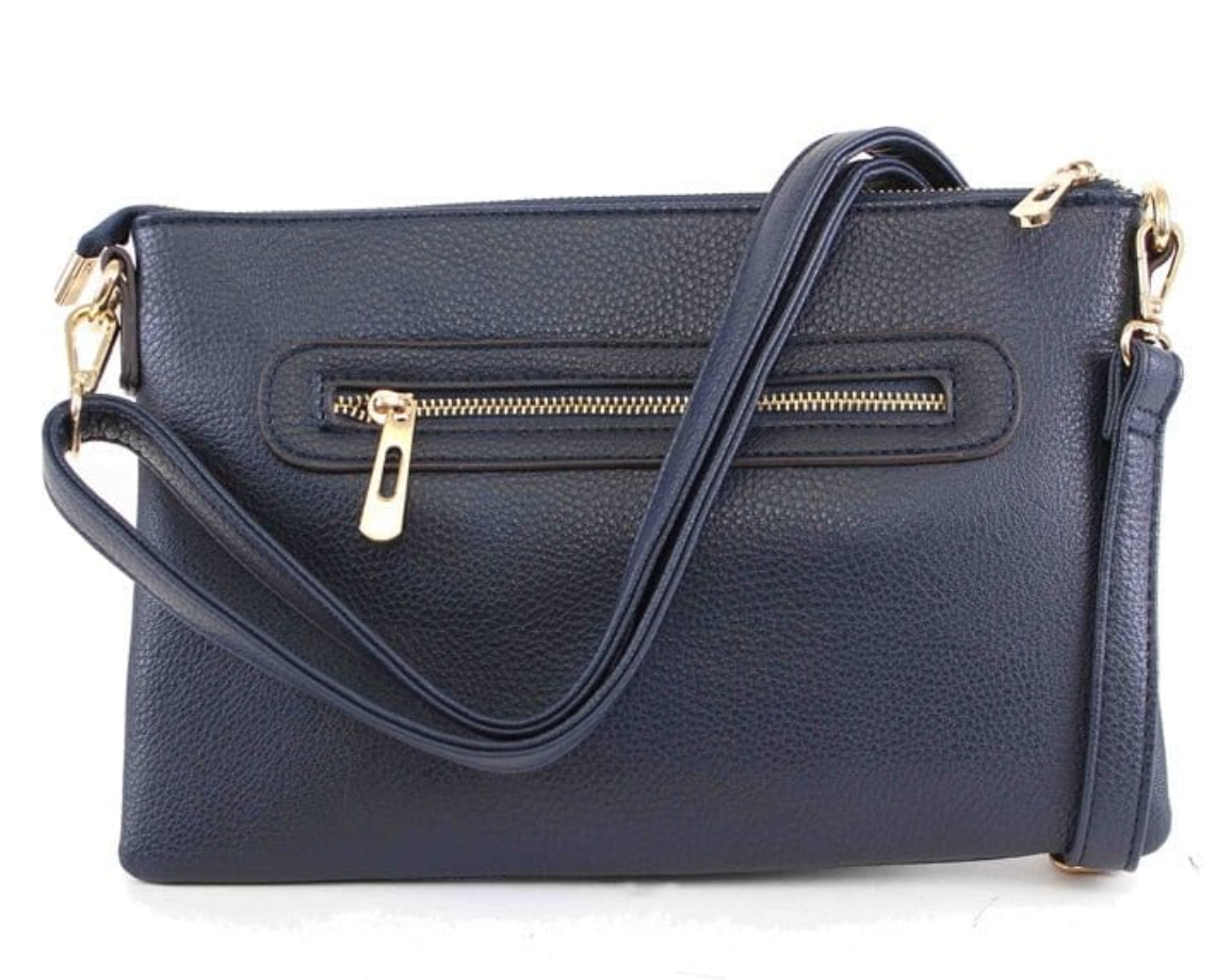 Make a fashion statement with this Zipper Pouch Wristlet Fashion Clutch/Crossbody - the perfect combination of convenience and style! The crossbody strap makes it easy to go from day to night, wherever you may roam. Keep your hands free and your style on point with this fashionable accessory.