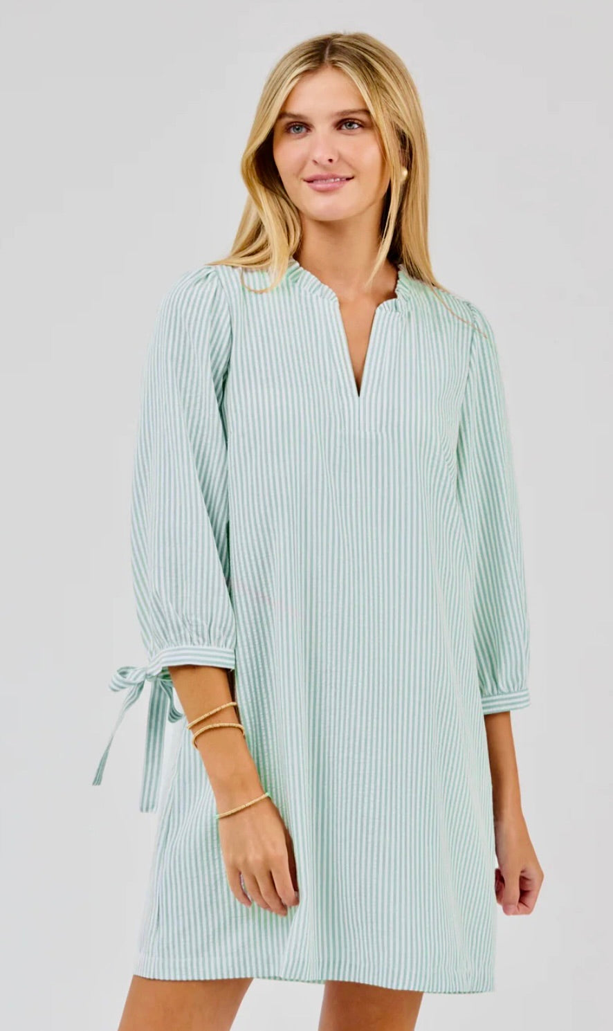 Ruffle V-neckline 3/4 Sleeves with tie detail Straight fit 60% Polyester / 40% Cotton