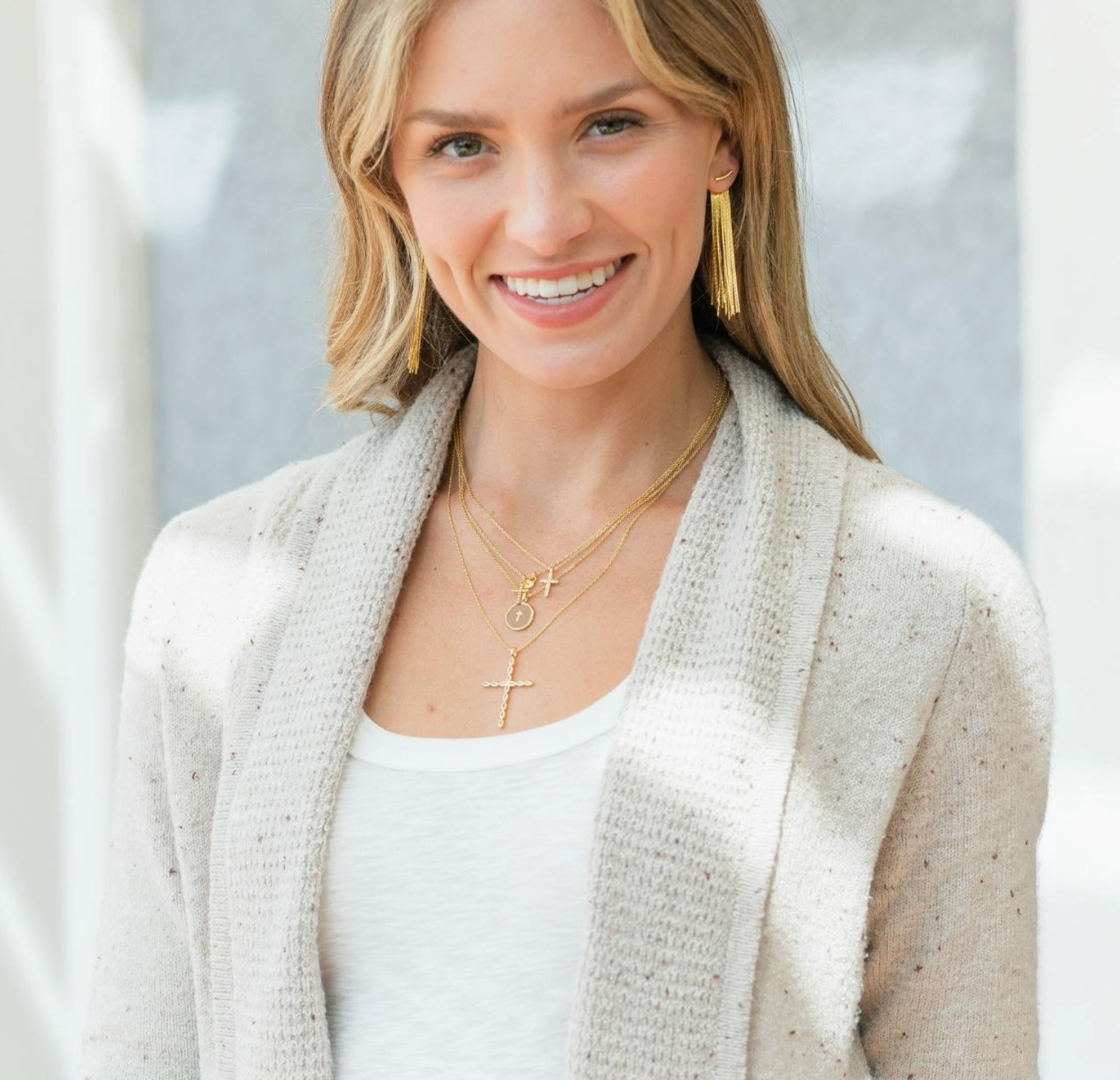Make a bold statement with the Large CZ Cross Pendant Necklace, beautifully crafted with 18k gold plating for a radiant finish. The striking cross pendant is adorned with sparkling Marquise cubic zirconia, adding eye-catching brilliance to your look. Perfect for adding a touch of elegance and faith-inspired style, this necklace pairs effortlessly with both casual and dressy outfits. Designed to shine, the 18k gold plating ensures this piece remains a treasured addition to your jewelry collection. Product Details 1.4" Marquise Cubic Zirconia Pendant 18" Necklace 18k Gold Plated Brass Base