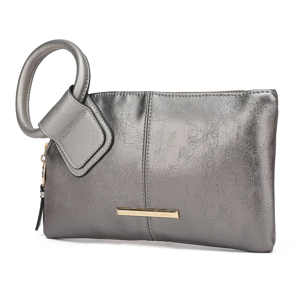 •Our Simone Clutch is the perfect easy, compact, and practical bag. This beautiful clutch is crafted from textured vegan leather with polished gold-tone embellishments. The Simone Clutch has a top zipper closure to keep your items secure and it features a convenient interior space with a wall zippered pocket, a deep slip pocket, and 6 cards slots that will keep your necessities neatly in place. No matter where the day or evening takes you, The Simone Clutch is the perfect grab-and-go bag.