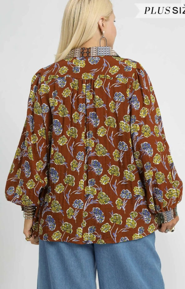 Paisley / Boarder Print • V-neck• Long balloon sleeves• Slight high-low hem• Not Lined