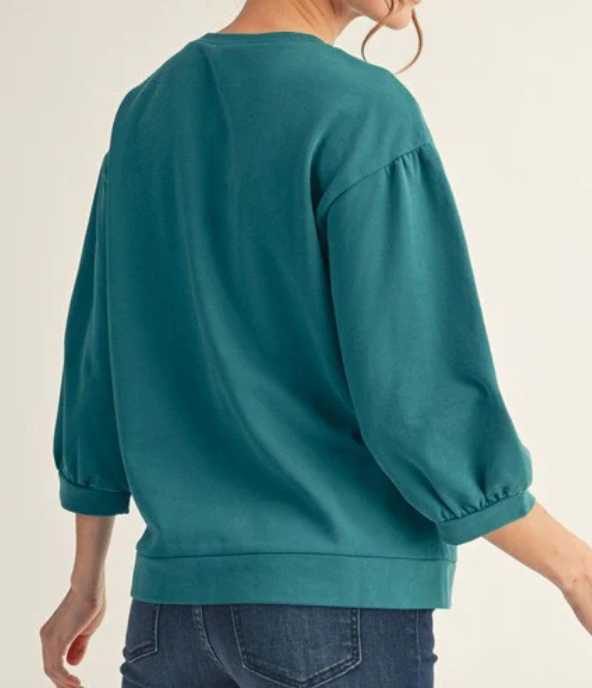 This 3/4 sleeve sweatshirt features a unique front floral patch with raw cut edges, adding an effortlessly stylish touch. Its relaxed fit makes it perfect for casual outings or cozy days at home, while the detailed patchwork brings a fresh, artistic vibe to your wardrobe. Embrace comfort and creativity in one versatile piece.