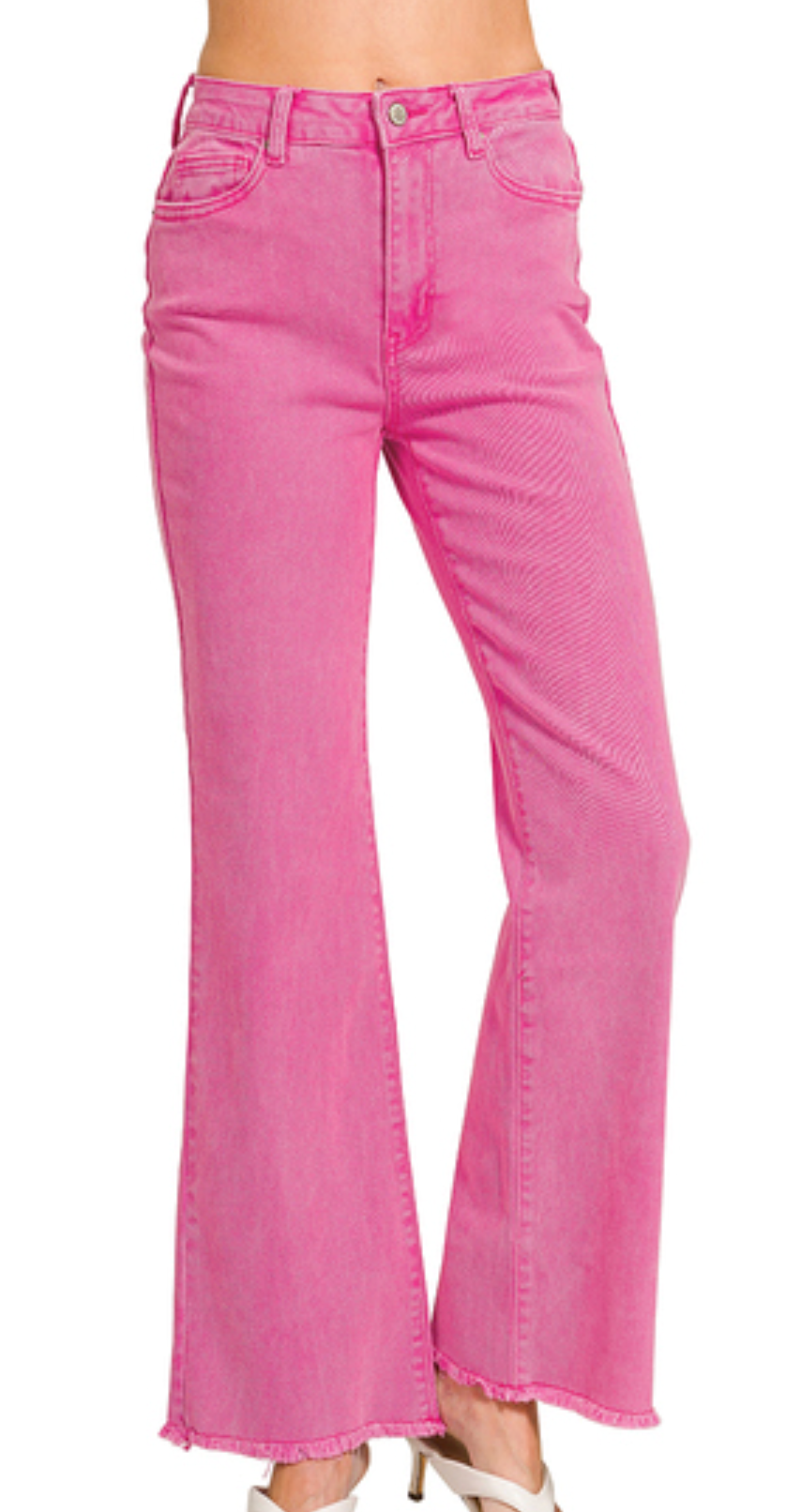 ACID WASHED FRAYED CUTOFF HEM STRAIGHT WIDE PANTS