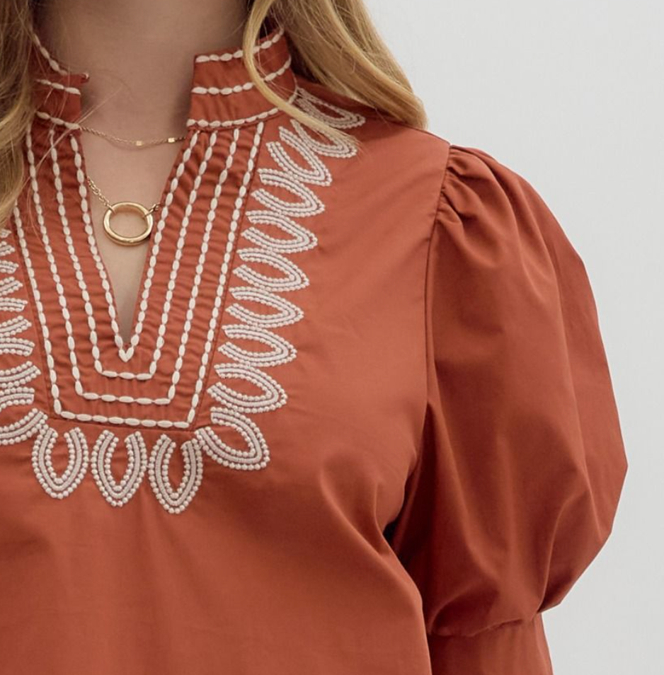Elevate your wardrobe with this solid cuff band pullover top, designed for effortless style and comfort. The short puff sleeves add a touch of femininity, while the embroidered V-neck band collar brings subtle elegance. Crafted from lightweight, woven fabric, this non-sheer top feels breathable and perfect for all-day wear. Its unlined design ensures a soft, comfortable fit without bulk. Ideal for pairing with jeans or skirts, this versatile piece effortlessly combines charm and ease for your everyday looks.